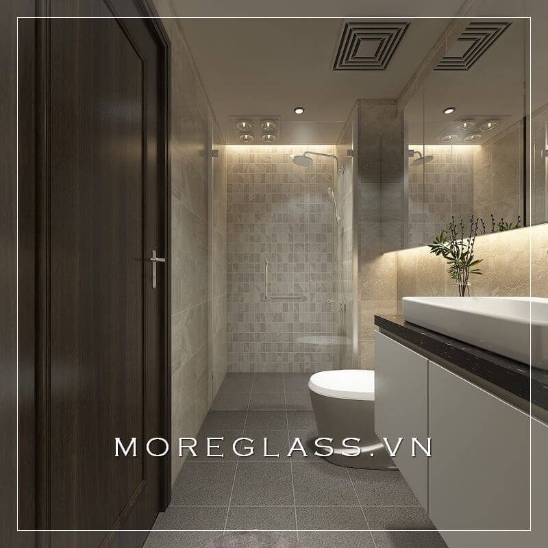 Morehome giới thiệu một mẫu thiết kế phòng tắm sang trọng với sự kết hợp giữa các tone màu trầm và những đồ trang trí tinh tế như gương, vách tắm kính cửa trượt, tủ mặt đá vân mây. Ngoài ra, còn có nhiều ý tưởng độc đáo khác để quý vị tham khảo thêm tại website: thietkenoithat.com.