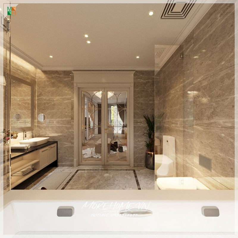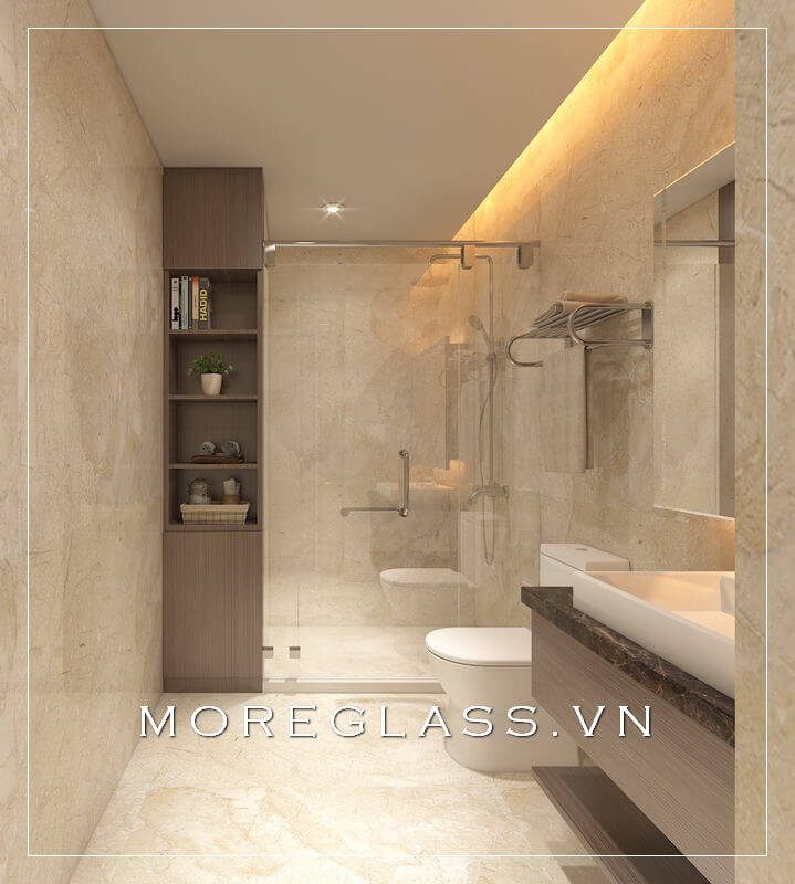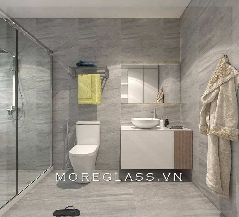 Khi bước vào căn phòng, bạn sẽ nhận ra sự sáng bóng của những viên đá lát sàn và đá ốp tường phòng tắm. Bề mặt của chúng luôn láng mịn và sáng bóng, giúp tăng thêm vẻ đẹp của phòng tắm.
