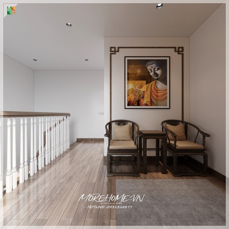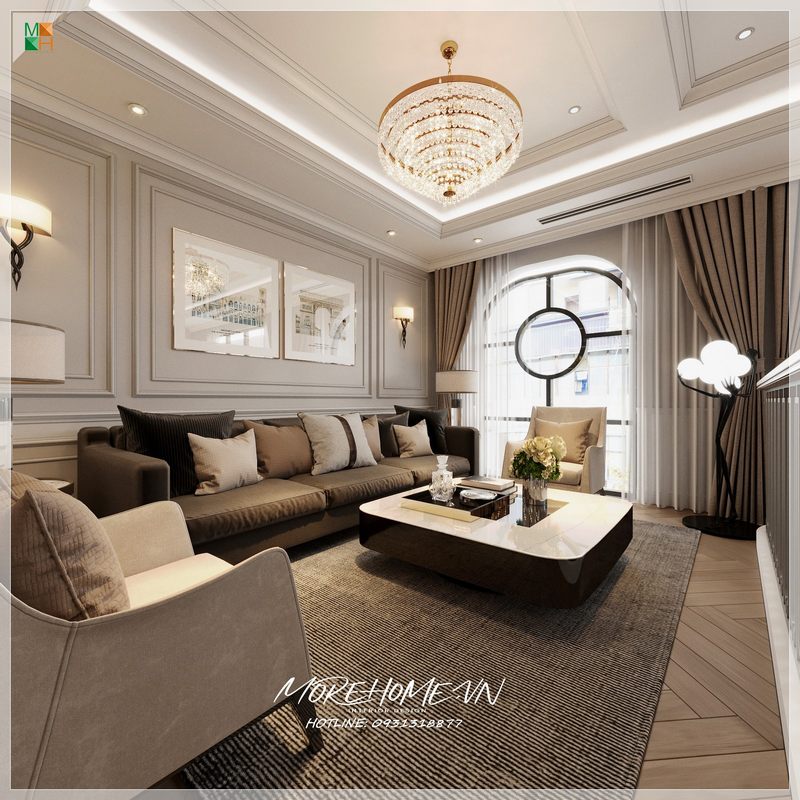 Morehome đã thực hiện sàn gỗ tự nhiên cho phòng khách tại công trình Hà Nội.