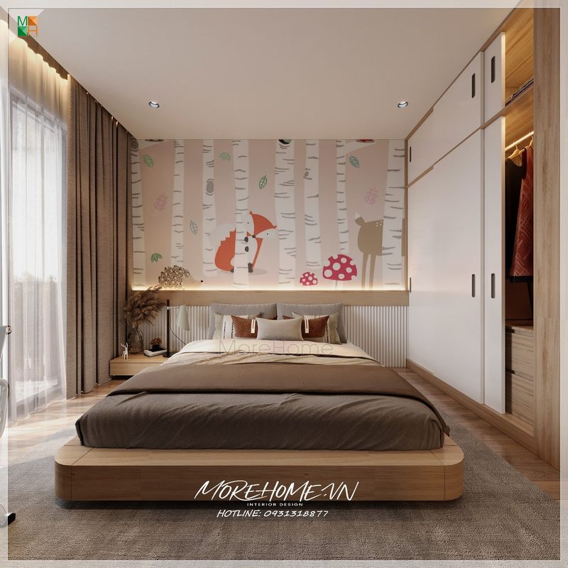 Mẫu thiết kế nội thất gỗ công nghiệp phù hợp với phòng ngủ có diện tích nhỏ là sự lựa chọn tốt nhất.